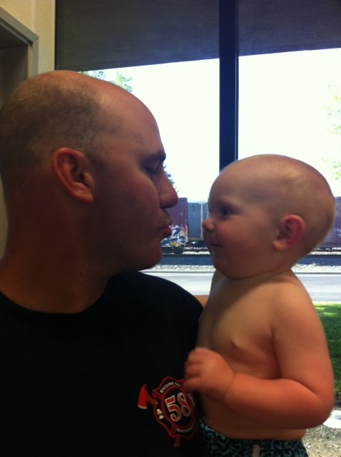 We followed swim class up with a swim date! One of my earliest childhood friends, Shannon, came to visit with her two little ones. Shannon and I have been friends since kindergarten when our dads bonded over being the only two dads video taping the first day of school! Little Guy had a blast playing with Mikayla (22 months) and Tyson (7 months)...yes, Shannon is BUSY!