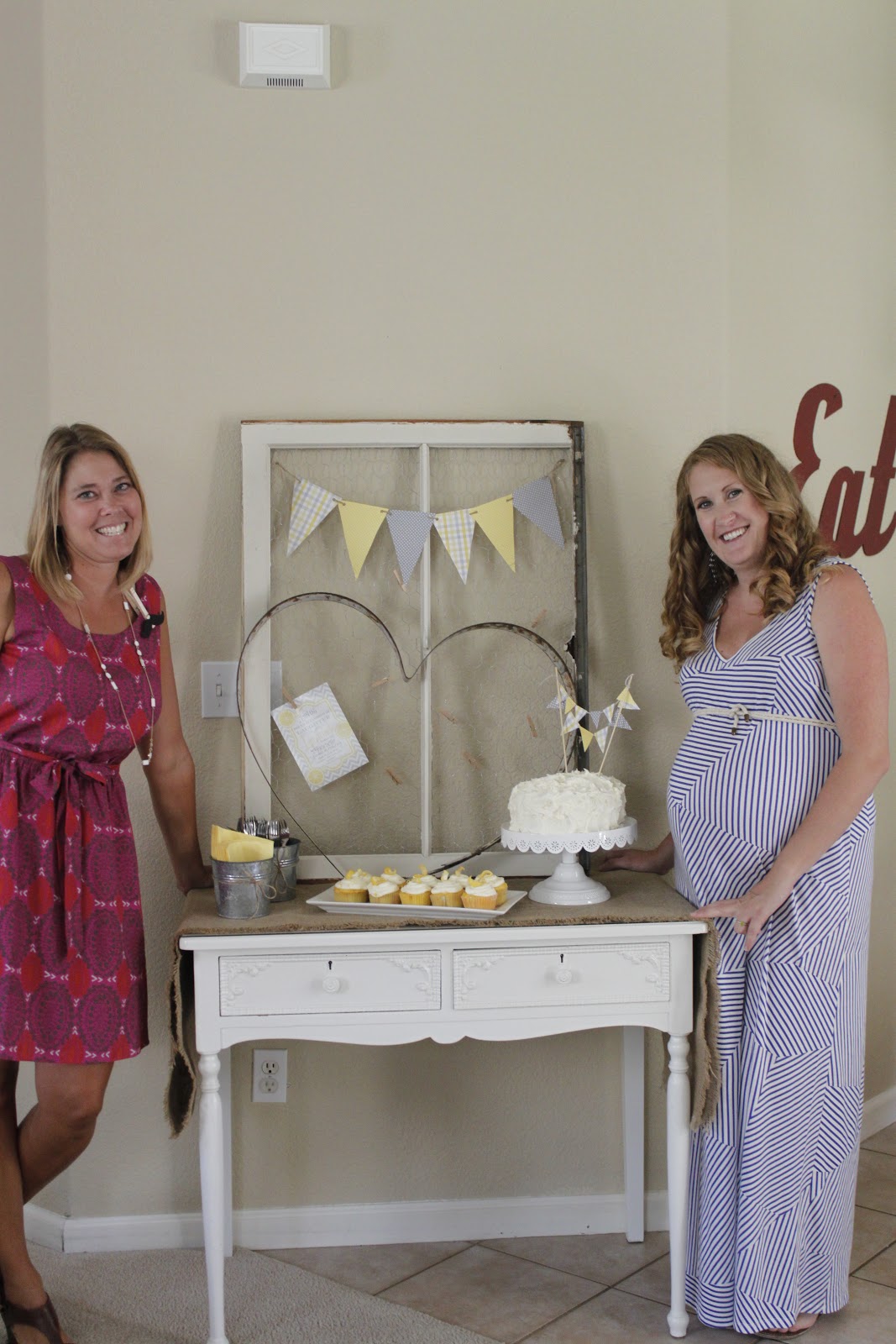 Today we hosted a little garden brunch for my preggo twin Alyssa. We have the exact same due date and it has made this pregnancy so much fun to have someone to share EVERYTHING with. Erin was gracious enough to open her house since mine is still under remodel and her garden and new fence were a beautiful background to a lovely party. We REALLY lucked out that the 105 degree heat from the day before was over and we even had a slight breeze to cool off the guests and make it a tad difficult to decorate with our flower vases being knocked over. I can't wait to meet baby Medina!!!